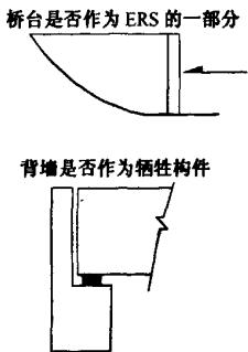 除了座式桥台的背墙在地震中的保险作用,应更为关注的是:是否选择将桥台作为 ERS 的一部分。当桥台不作为 ERS 的一部分时,下部结构被设计为抵抗所有的侧向荷载而不需要桥台的贡献。而桥台则提供了一种无法量化的额外的安全机制。为了保证墩柱可以抵抗侧向荷载,应假