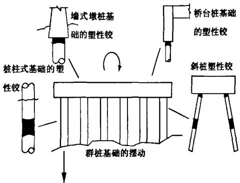| 一型,延性下部结构和完全弹性上部结构 | 包括传统的墩柱内、墩墙内的塑性铰以及调动桥台后填土的被动土抗力来限制惯性力。另外还包括地面下基础的塑性铰。 |