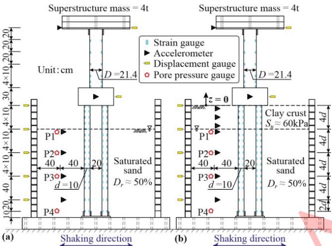 Yematan Second Bridge consists of two separate bridge structures for bidirectional transportation: the upstream bridge is 880\text{-m} in length comprising eleven 4 \times 20\text{m} girder bridges, and the downstream bridge is 900\text{-m} in length comprising nine 5 \times 20\text{m} girder bridges. Figure 4 illustrates a typical bent of Yematan Second Bridge. Prestressed concrete (PC) hollow slab-girders are connected to the continuous deck and simply supported by reinforced concrete (RC) two-column bents with extended pile-shafts through elastomeric bearings. The ground soil consists of loose to dense sandy soils, the upper layers of which are seasonally frozen.