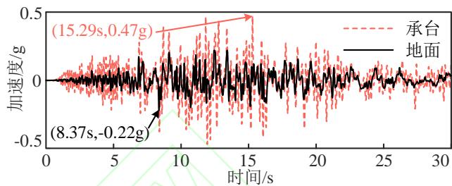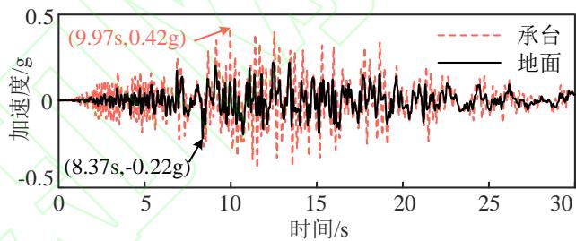 图 4 不同墩高下承台和地面加速度时程