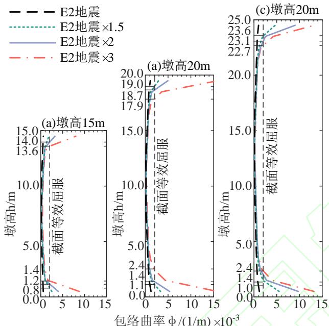 图 3 不同墩高下墩柱曲率包络图
